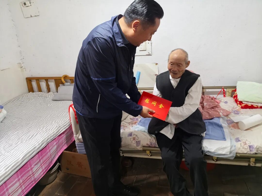 在國慶、中秋雙節(jié)來臨之際,黃福常、張同信、杜飛等縣四大家領導重點走訪慰問了我縣新中國成立前加入中國共產(chǎn)黨的農(nóng)村老黨員,向他們致以崇高敬意和誠摯問候。? ? 縣領導與老黨員促膝交談,拉家常、話發(fā)展,詳細了解他們的生活情況和身體狀況,叮囑他們保重身體,傾聽他們的意見建議,向他們轉達黨中央的關心關懷,并為他們送去慰問金。慰問中,縣領導表示,新中國成立前加入中國共產(chǎn)黨的農(nóng)村老黨員是黨和國家的重要財富,為成武發(fā)展做出了巨大貢獻,要時刻把老黨員的冷暖放在心上,既要在政治上尊重、思想上關心,更要在生活上照顧,全面落實各項政策待遇,帶著感情、帶著責任解決他們遇到的實際困難,讓老同志們充分感受組織的溫暖,安享幸福晚年。